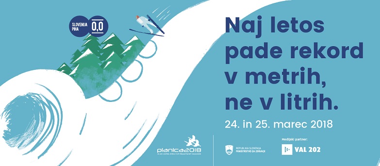V SZOTK sporočamo, da se bo v soboto in nedeljo ob veselemu dogajanju v Planici odvila akcija Ministrstva za zdravje namenjena za osveščanje o alkoholu – Slovenija piha 0,0. Navijanje in rajanje bo dodatno popestrila posebna 0,0 pihalna zasedba, ki bo treznim navijačem izpolnjevala glasbene želje. V sodelovanju s predstavniki nevladne organizacije, inšpekcijskimi službami in medijskim sponzorjem Valom 202 na ministrstvu želijo, da bi letošnjo Planico zaznamovali dosežki športnikov skakalcev in ne priložnost za opijanje.