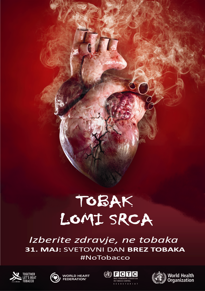 Letos poteka Svetovni dan brez tobaka pod globalnim geslom »Tobak in bolezni srca in ožilja«. Kajenje in pasivno kajenje (izpostavljenost tobačnemu dimu drugih) sta namreč eden najpomembnejših vzrokov za bolezni srca in ožilja in sta v svetovnem merilu vzrok 12% smrti zaradi bolezni srca in ožilja. Kadilci imajo v primerjavi z nekadilci 2-4-krat višje možnosti za koronarno srčno bolezen in možgansko kap, poveča pa se tudi tveganje za nenadno srčno smrt, aortno anevrizmo in periferno arterijsko bolezen. Tudi kadilci, ki pokadijo manj kot pet cigaret na dan, imajo večje tveganje za bolezni srca in ožilja v primerjavi z nekadilci.