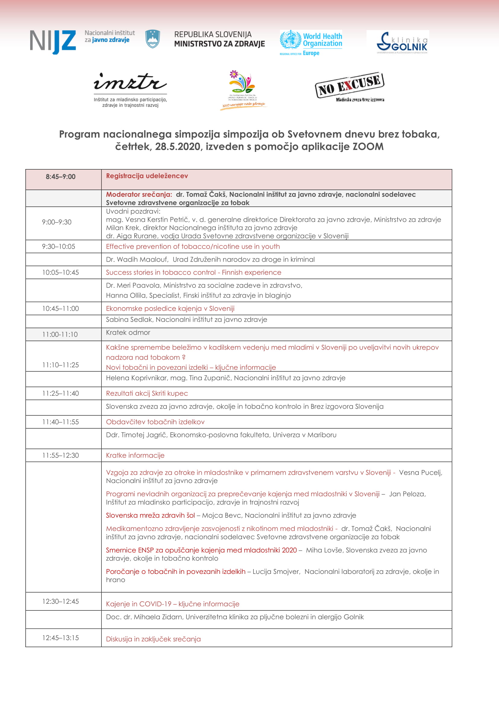 Nacionalni simpozij ob svetovnem dnevu brez tobaka, 28. maj 2020