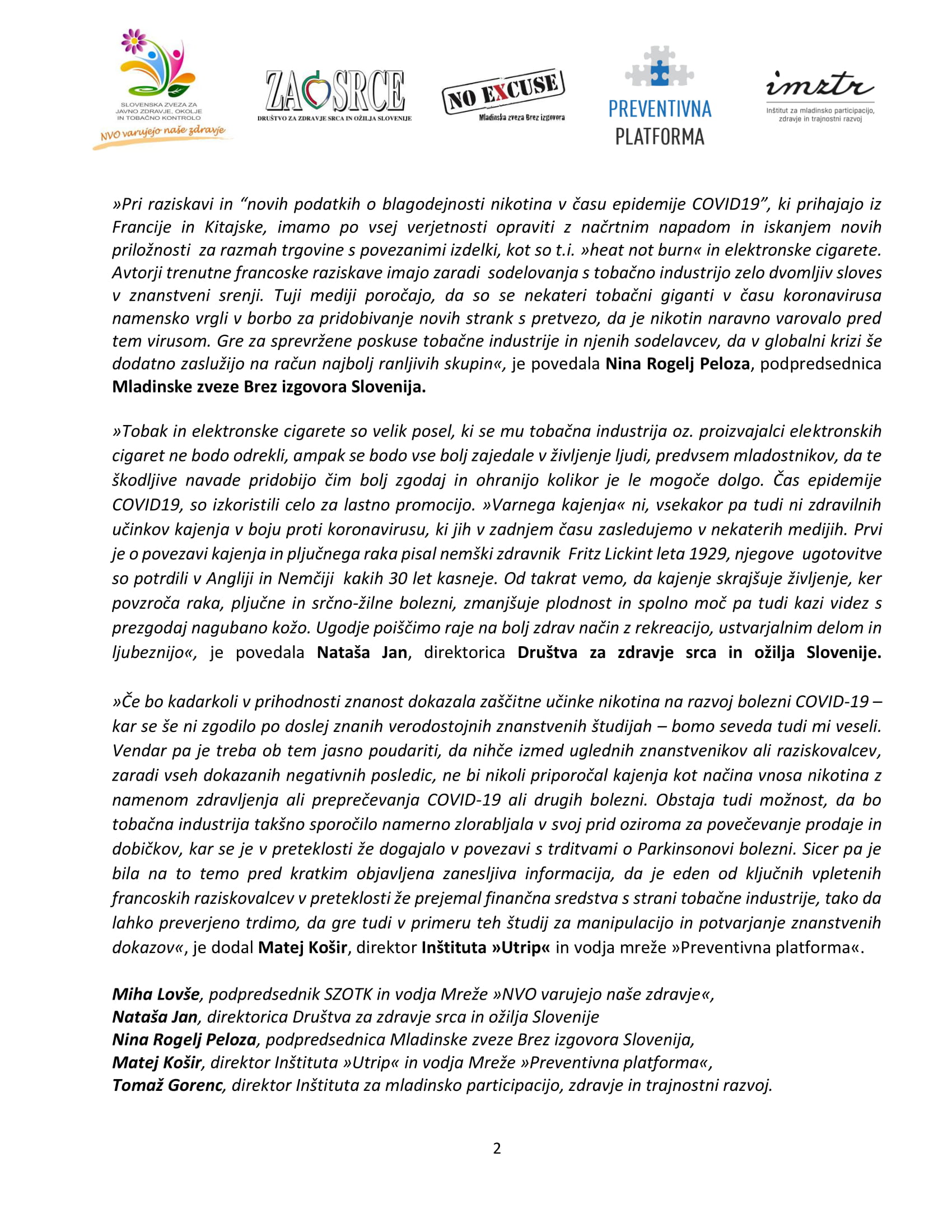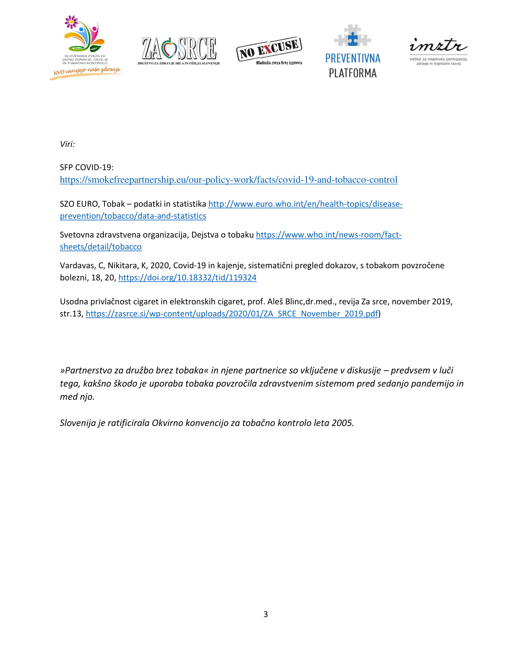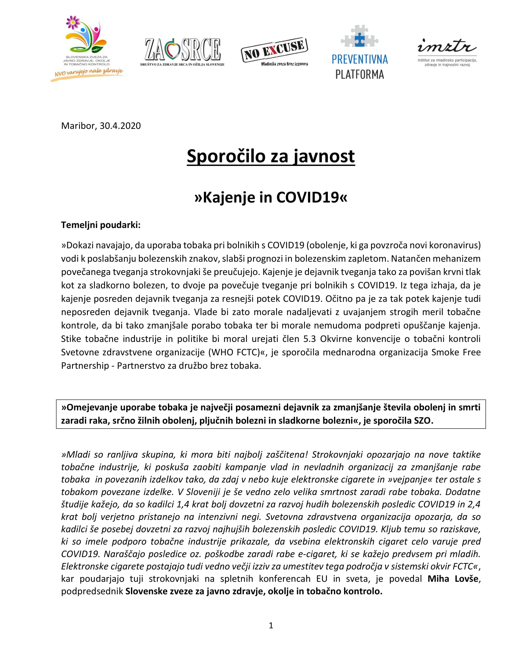 Sporočilo za javnost: “Kajenje in COVID19”