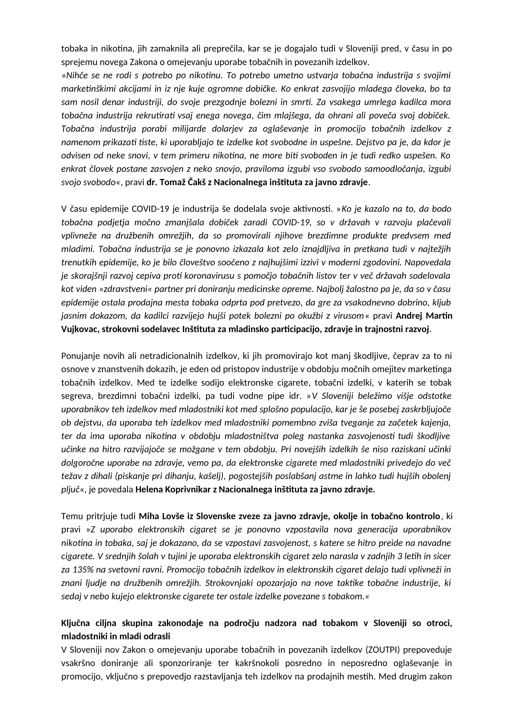 SPOROČILO ZA MEDIJE: 31. maj – Svetovni dan brez tobaka